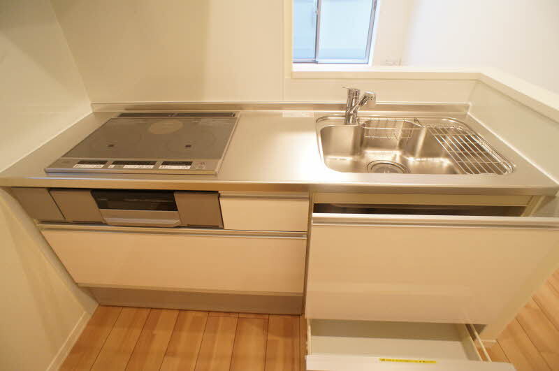 Bicycle parking / IH cooking heater / Three-burner stove / Gas stove allowed / Public water / City gas / Separate bath and toilet / Washer space / Air conditioner / Auto-lock / BS terminal / CATV / Internet ready / Free internet / Wood flooring / Corner unit / Video intercom / Heated toilet seat / Shower / Reheating function / Bathroom dryer / Water heater