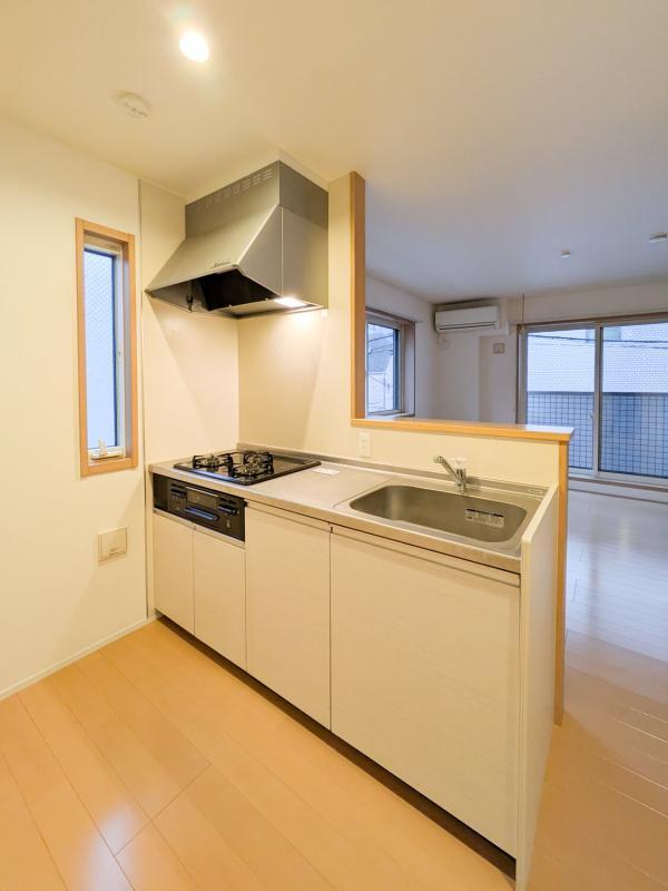 Just a 3-minute walk from Higashi-Nakano Station, this 1LDK unit offers 42.75㎡ of living space in a 2016 steel-frame designer apartment. The 2nd-floor corner unit features a system counter kitchen with a three-burner stove, separate bath and toilet, bathroom dryer and reheating function, delivery box, auto-lock and security cameras, plus a balcony. Perfect for singles or couples, it is available for immediate move-in under a two-year fixed-term lease; deposit and key money are ¥185,000 each, common service fee ¥8,000/month.