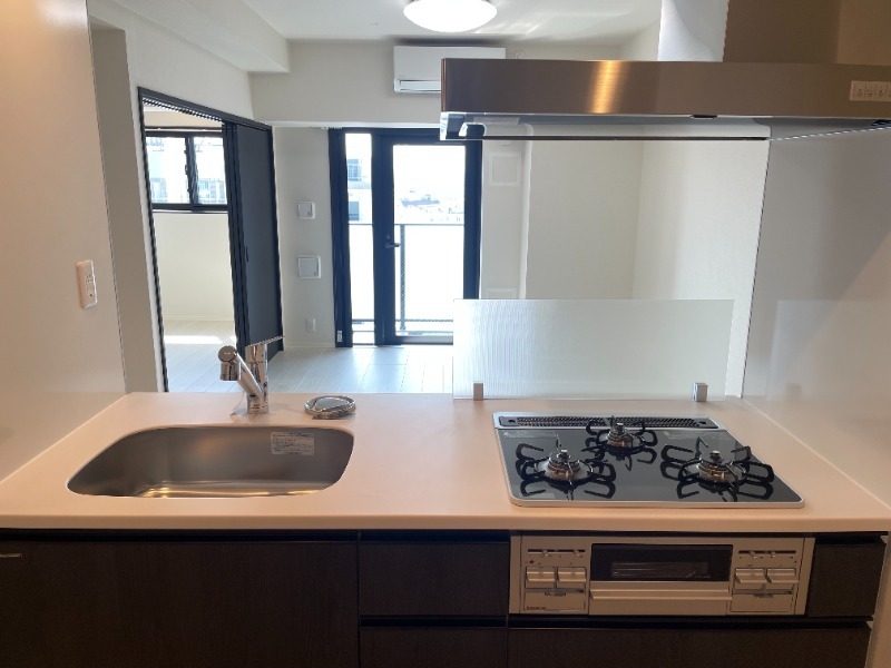 Elevator / Bicycle parking / Motorcycle parking / Delivery box / On-site garbage station / System kitchen / Three-burner stove / Gas stove allowed / Public water / City gas / Drainage / Sewer / Separate bath and toilet / Independent washbasin / Indoor washer space / Air conditioner / Auto-lock / Pet-friendly / Two-person occupancy allowed / Foreigner-friendly / BS terminal / CS terminal / Free internet / Wood flooring / Balcony / Corner unit / Condominium type / Shoes box / Video intercom / Security cameras / Private bath / Warm-water toilet seat / Reheating function / Bathroom dryer