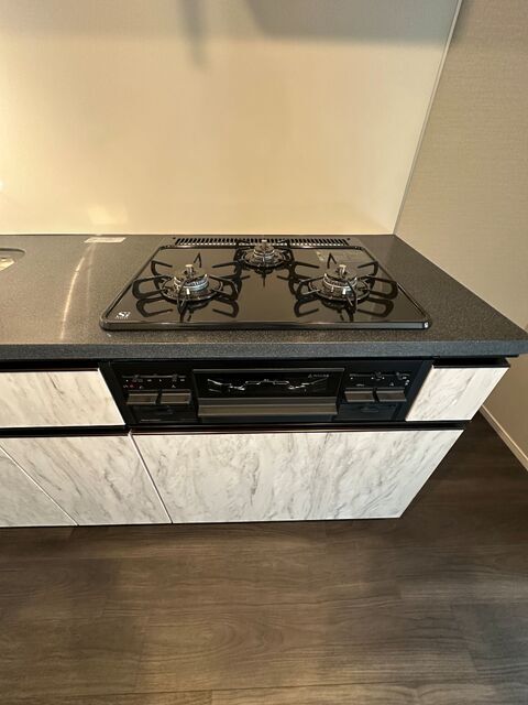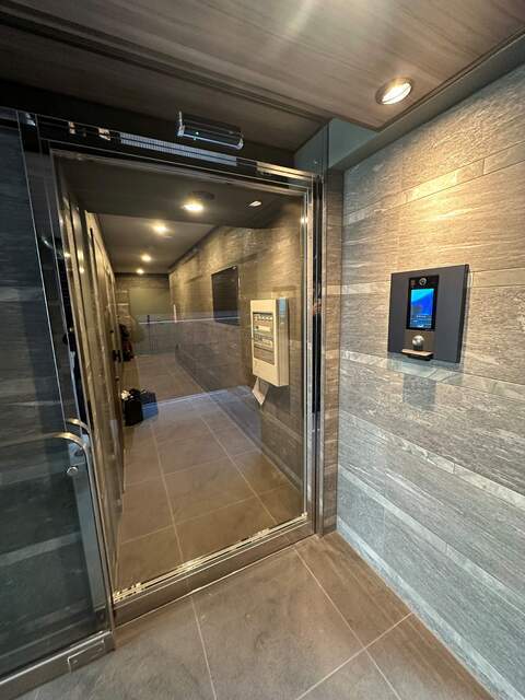 Elevator / Delivery box / On-site garbage station / System kitchen / Three-burner stove / Grill / City gas / Separate bath and toilet / Independent washbasin / Washer space / Air conditioner / Auto-lock / Pet-friendly / Two-person occupancy allowed / CATV / Free internet / Corner unit / Top floor / Storage space / Shoe box / Video intercom / Washlet / Shower / Reheating function / Bathroom dryer / Hot water supply
