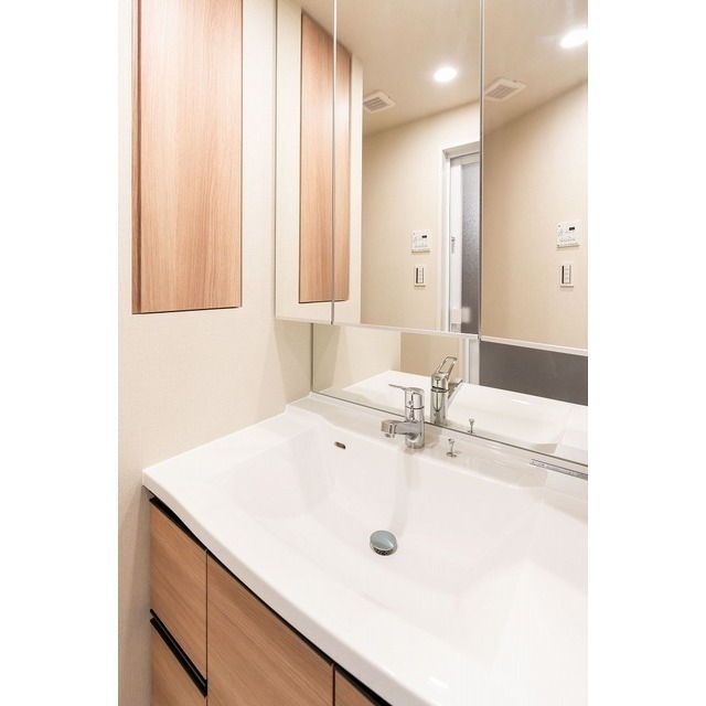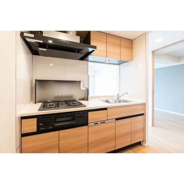 Elevator / Bicycle parking / Motorcycle parking / Delivery box / 24-hour garbage disposal / System kitchen / Separate bath and toilet / Indoor washer space / Air conditioner / Auto-lock / Pet-friendly / BS terminal / CS / Internet ready / Free internet / Lighting fixtures included / Wood flooring / Shoe-in closet / Trunk room / Video intercom / Security cameras / Washlet / Reheating function / Shower vanity / Hot water supply