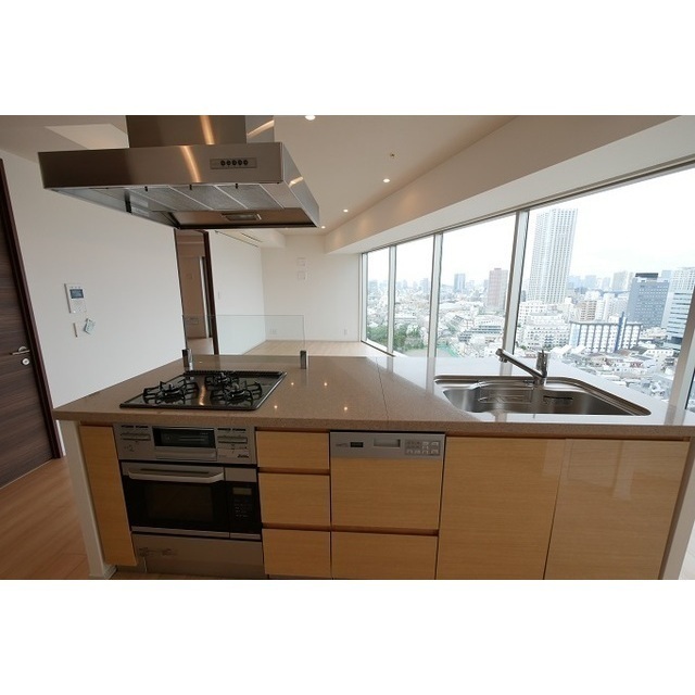 Elevator / Bicycle parking / Motorcycle parking / Delivery box / System kitchen / Garbage disposer / Air conditioner / Auto-lock / Pet-friendly / BS terminal / Wood flooring / Video intercom / Security cameras / Bathroom dryer