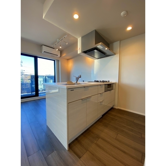 Nestled in Meguro-ku, this 2LDK residence is a 9-minute walk from Midorigaoka Station. The 50.66㎡ unit on the 3rd floor of a reinforced-concrete building completed in 2026 faces west and enjoys good afternoon light. Building amenities include an elevator, delivery box, auto-lock and security cameras. The apartment offers a three-burner gas kitchen, separate bath and toilet with reheating and dryer functions, plus a walk-in closet. Pet-friendly and available for immediate move-in under a standard two-year lease.
