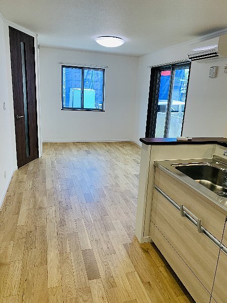 This bright 2LDK home in Mitaka combines 72.1㎡ of living space with modern fixtures and is set in a quiet residential area. The two-story wooden detached house, completed in 2024, faces southwest for good sunlight and includes a system kitchen with a three-burner stove, two toilets, bath with reheating and dryer, walk-in closet, underfloor storage, balcony and garden. On-site parking for one car is available. No key money; deposit one month and management fee ¥10,000. Move-in by consultation under a standard two-year lease, a comfortable option for couples or small households.