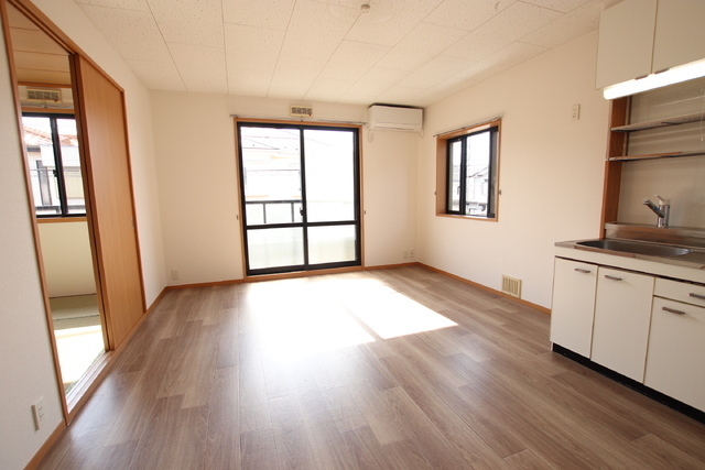 Nestled in Nishitokyo, this 2LDK residence is a 10-minute walk from Tanashi Station. The 47.54㎡ steel-frame apartment on the top (second) floor is a south-facing corner unit that enjoys good sunlight and features a separate bath and toilet, independent washbasin, indoor washer space and air conditioning. It includes one free on-site parking space (small car size), allows two occupants, and is available from late February 2026 under a standard two-year lease with a 0.5-month rent-free incentive.