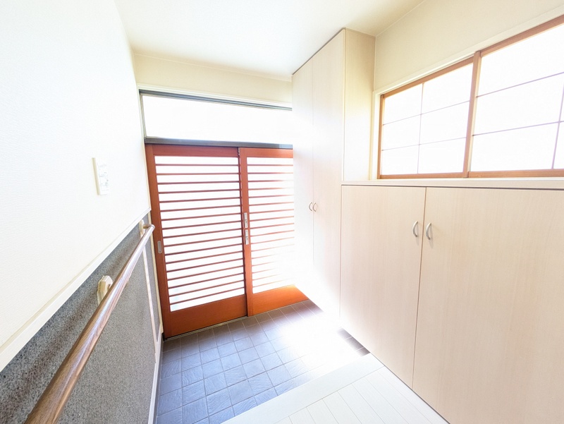 This bright 3SLDK home in Suginami offers 81.79㎡ of living space in a two-story wooden house built in 1977 and is available for immediate move-in. The south-facing layout provides good sunlight and includes a system kitchen, separate bath and toilet with reheating and a bathroom dryer, plus a monitor intercom and ample storage. Designed for family or two-household living, the property includes two parking spaces and requires one month deposit and one month key money; available under a two-year fixed-term lease.