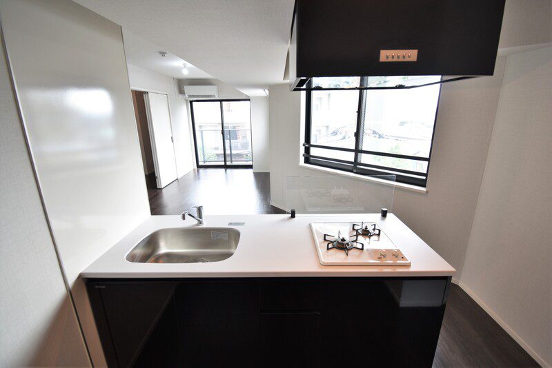 Elevator / Bicycle parking / Delivery box / On-site garbage station / Two-burner stove / Public water / City gas / Drainage / Sewer / Separate bath and toilet / Independent washbasin / Indoor washer space / Air conditioner / Auto-lock / Pet-friendly / Two-person occupancy allowed / Foreigner-friendly / BS terminal / CATV / Fiber optic internet / CS / Digital terrestrial TV / Internet ready / Free internet / Wi-Fi / Motion-sensor lighting / Wood flooring / Balcony / Good sunlight / Corner unit / Tiled exterior / Restaurant use not allowed