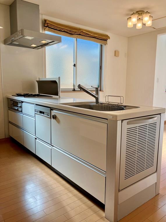 System kitchen / Counter kitchen / Three-burner stove / Gas stove / Dishwasher / Public water / City gas / Drainage / Sewer / Separate bath and toilet / Independent washbasin / Washer space / Air conditioner / Lighting fixtures included / Wood flooring / Balcony / Video intercom / Private bath / Private toilet / Bidet toilet seat / Shower / Reheating function / Auto-bath / Bathroom dryer / Shower vanity / Hot water supply