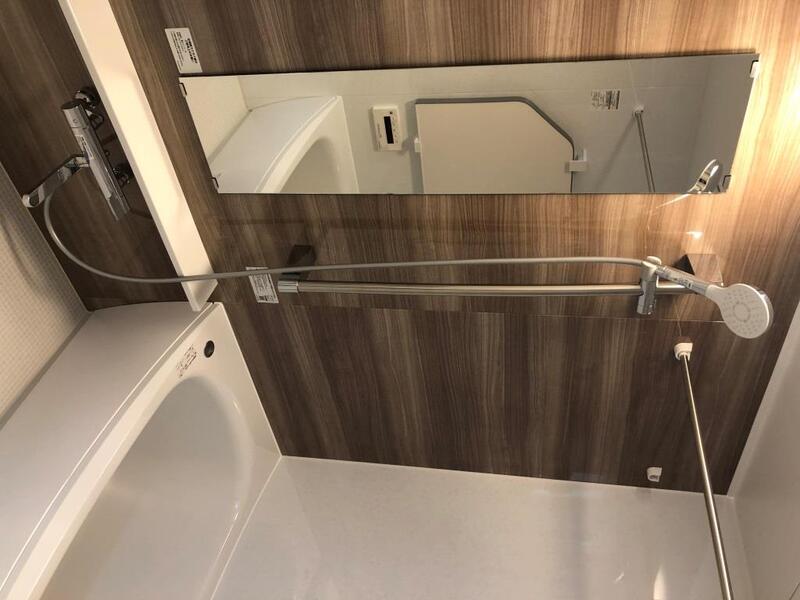 Elevator / Bicycle parking / Delivery box / System kitchen / Gas stove / Public water / City gas / Independent washbasin / Air conditioner / Auto-lock / BS terminal / CATV / Wood flooring / Balcony / Shoes box / Security cameras / Private bath / Private toilet / Water heater