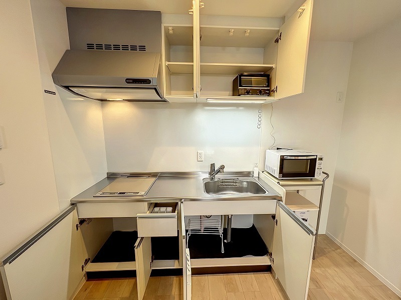 Bicycle parking / Motorcycle parking / Delivery box / System kitchen / IH cooking heater / Two-burner stove / Public water / City gas / Drainage / Sewer / Separate bath and toilet / Independent washbasin / Washer space / Air conditioner / Wood flooring / Corner unit / Shoes box / Video intercom / Private bath / Warm water toilet seat / Reheating function / Bathroom dryer / Shower vanity / Hot water supply